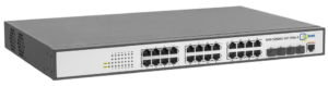 | Управляемый гигабитный POE коммутатор уровня 2, 24 порта 10/100/1000Base-T с поддержкой POE, 4 порта 100/1000BASE-X (SFP), бюджет POE 370W, 16K MAC адресов, встроенный блок питания, 220V AC, размеры 442х44х280 мм, система охлаждения активная |